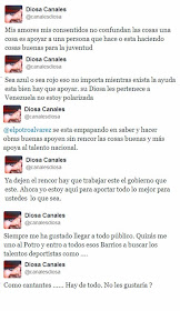 Así lo dio a conocer en su cuenta personal @canalesdiosa donde expresó: @elportroalvarez se está empapando en saber y hacer obras apoyen sin rencor las cosas buenas y más apoya al talento nacional”.