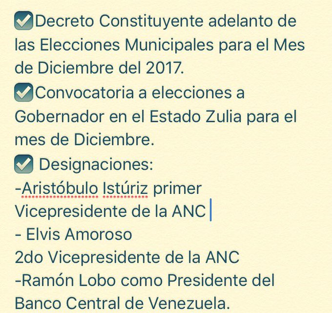 SeguirDecisiones de la Asamblea Nacional Constituyente hoy 26 de octubre de 2017 #ANCUneAVenezuela