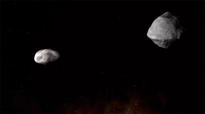 El Asteroide (66391) 1999 KW4 consiste de una roca espacial de poco menos de una milla de ancho (aproximadamente 1.5 km), con un asteroide compañero de 0.3 millas de ancho (0.5 km de ancho), una luna asteroide, que orbita alrededor del asteroide principal.